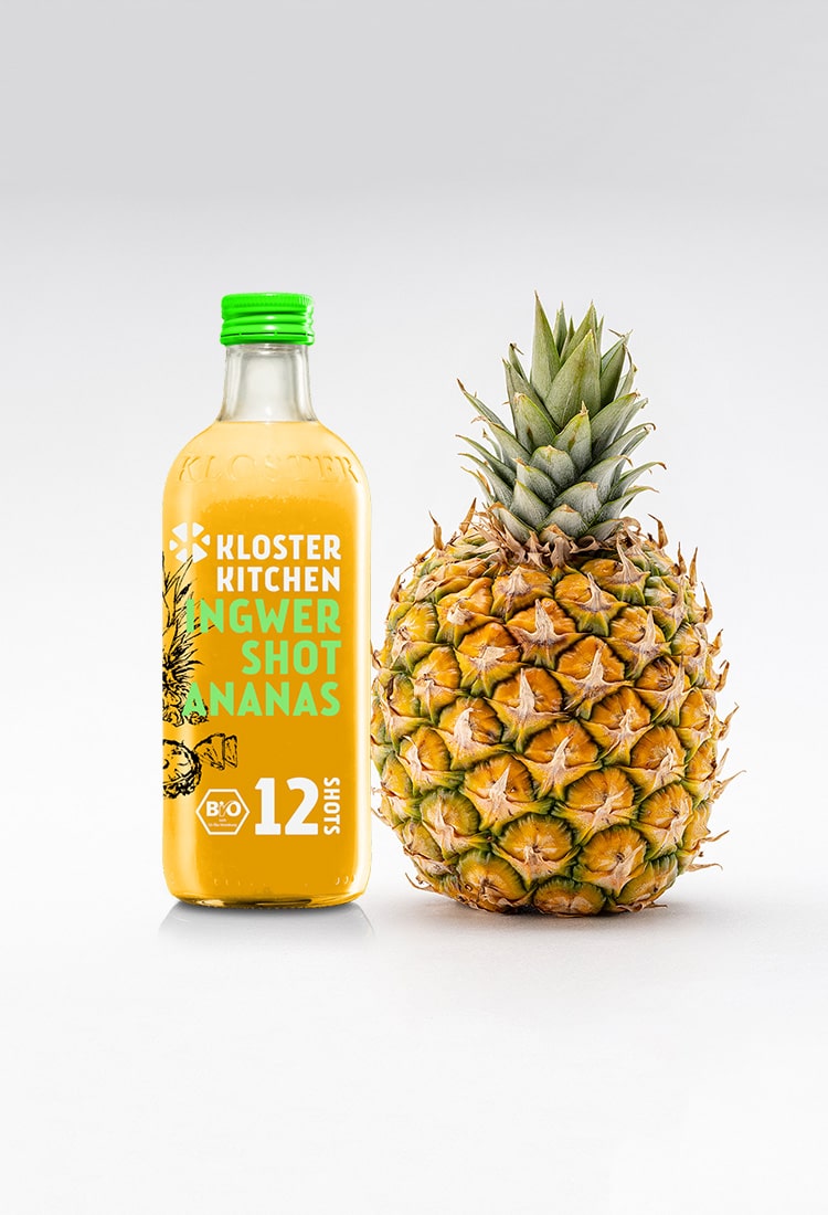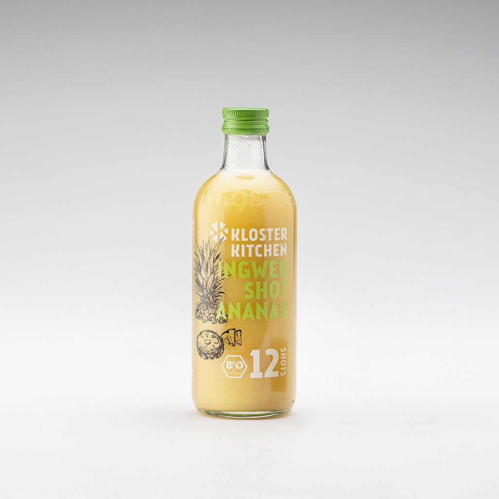 Ya sean 12SHOTS para casa o 1SHOT para llevar. Cada chupito de jengibre de Kloster Kitchen es nada menos que pura inspiración para la mente en lugar de otro chupito aburrido.