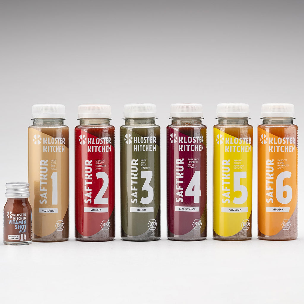 Por supuesto, nuestros zumos también pueden tomarse como complemento de una dieta normal y equilibrada, independientemente de un programa específico de ayuno. Por supuesto, todas nuestras bebidas tienen certificación ecológica (organismo de control ecológico DE-ÖKO-006).