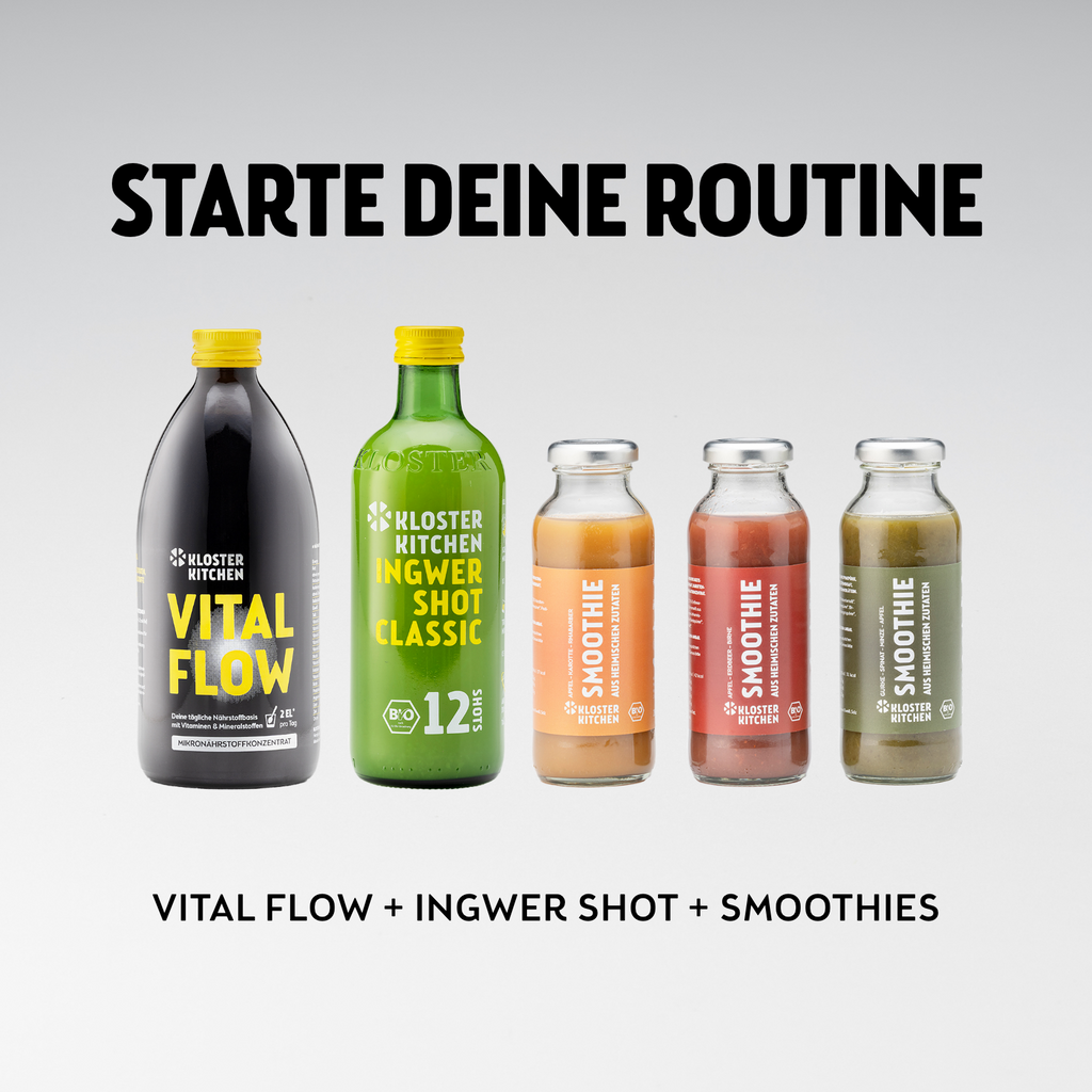 Una antigua receta de monasterio fue la inspiración para lo que hemos hecho posible con un proceso de fabricación especialmente desarrollado: trocitos de jengibre finamente picados en cada producto. Ingredientes ecológicos puros (organismo de control ecológico DE-ÖKO-006) hacen que todos nuestros productos sean lo que usted quiere que sean: un chupito de jengibre natural, perfectamente aromatizado y ligeramente picante que destaca por su calidad superior, ¡totalmente sin aditivos artificiales!